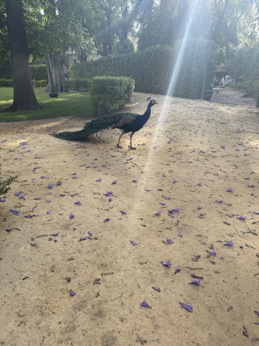 The Alcázar is a remarkable example of Mudéjar architecture, a style that blends Islamic art with Gothic and Christian traditions. The intricate tilework and horseshoe arches all reflected centuries of multicultural craftsmanship. Wandering the palace’s sprawling gardens—filled with citrus trees, fountains, and even a few strutting peacocks—felt like stepping into another era. The gardens were constructed alongside the palace but were expanded and enhanced after the Castilian conquest in 1492, demonstrating how the palace evolved with each ruling dynasty.
