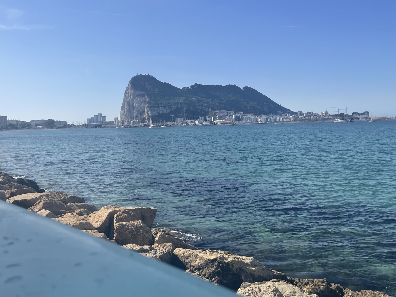 Around 7:30, Wen Ting returned with news that she found the bus at another hotel, and the journey began. Grace and I sat together on the bus and promptly fell asleep before we could watch people’s stomach bugs combine with motion sickness to create a dreary and anxious atmosphere. When we stopped at a gas station, everyone was ready to get off the bus. Whether for fresh air, the bathroom, snacks, or Sprite, we used that break to its full capacity. Personally, I stretched my legs and took in the unfolding scenery– a gorgeous mountain range. Then it was time to complete the bus ride to Gibraltar.