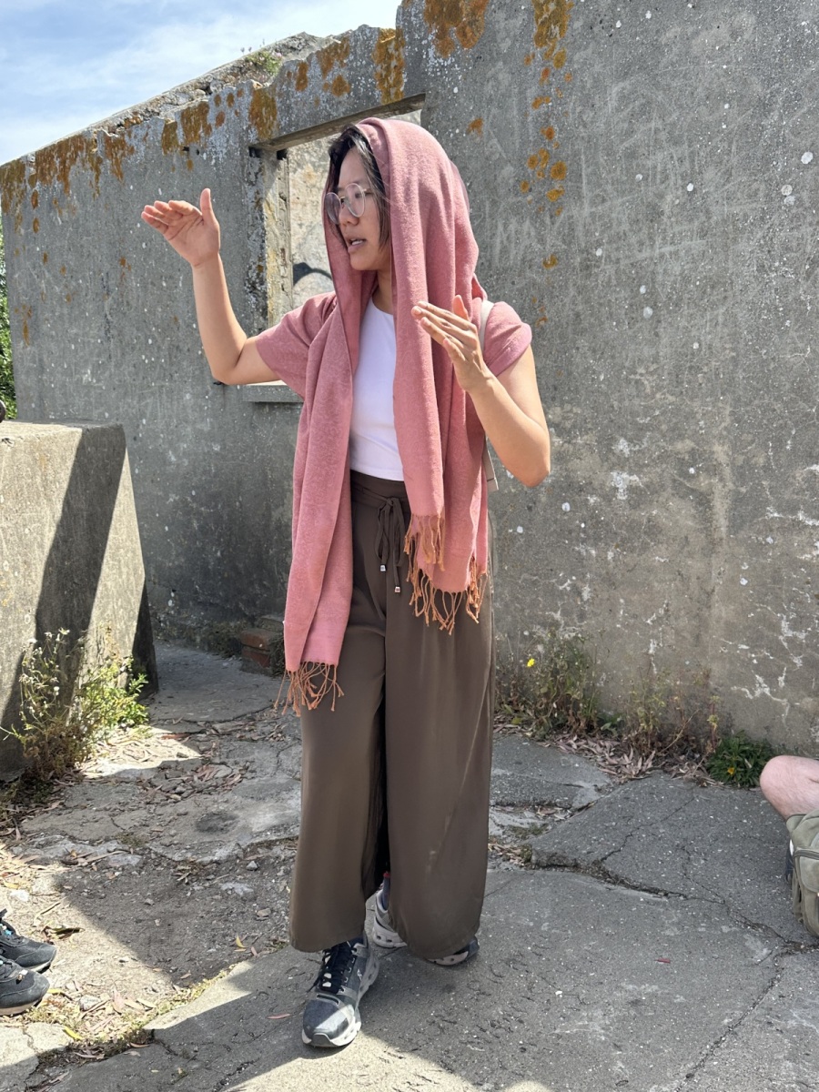 Wen Ting explaining geologic formation of the rock of Gibraltar