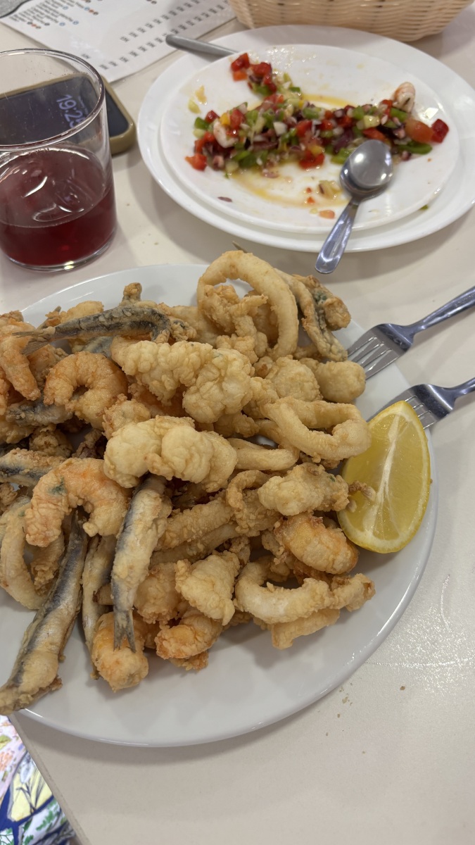 Later in the day Ana and I spent some time walking around and window shopping. Wen Ting took a much-deserved break from doing work and got some seafood from a great tapas bar, Los Diamantes, near the hotel. At first, I thought Los Diamantes was unique in the way tapas ordering works there, until Ana and I got dinner at another tapas bar that worked the same way. How, might you ask? In Granada, you order a beverage and get a tapa for free. By this point the group has been in Spain for over a week and the first thing we realized is how affordable tapas (literally meaning “snacks” but can also mean “to share”) prices are.