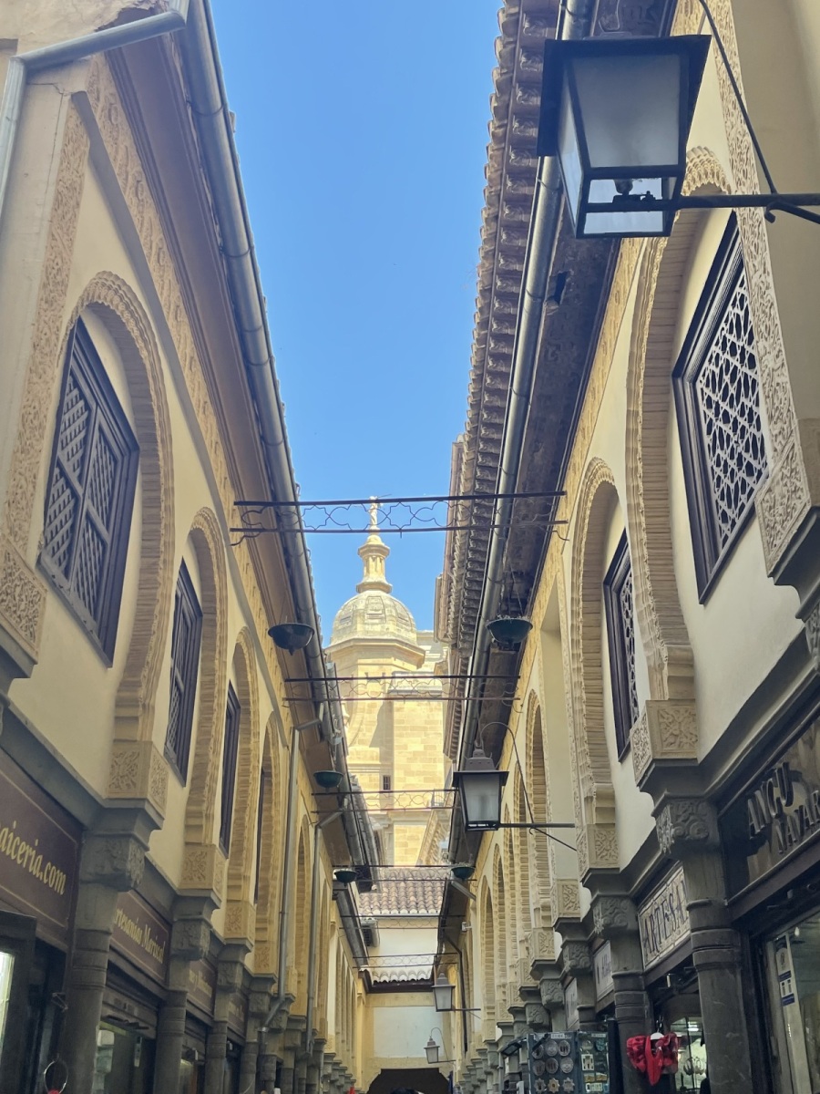 Sophie and Gabby also visited the old silk market and bazaar, Alcaicería, which is located directly next to the Cathedral of Granada. The original market was built in the 15th century, during the rule of the Nasrid Dynasty, and is one of the only remaining Moorish traditions to survive the Christian conquest of the city in 1492. The original market was home to greater than 200 shops, squeezed into a few streets and alleyways. It was even protected by iron gates and guards, to safeguard the products and keep the space for pedestrians only. During this time period, Alcaicería, sat in the heart of Granada making it a key site for economics, cultures, and politics. However, in the 19th century, the original bazaar burned down by a fire. It was re-built; however, due to the expanding size of the city, Alcaicería was no longer the heart of the activity, and its space was reduced in size. Today it is still one of the largest functioning markets in Spain, and there are goods of all variety to be found! Whether you’re looking for something to bring back home as a souvenir, some tea to refill what you’re almost out of, or new decoration for your living space, Alcaicería is the place to look! And like anyone stopping to admire Granada, some from our group followed Gabby’s advice and found some amazing things to bring home to family and friends.