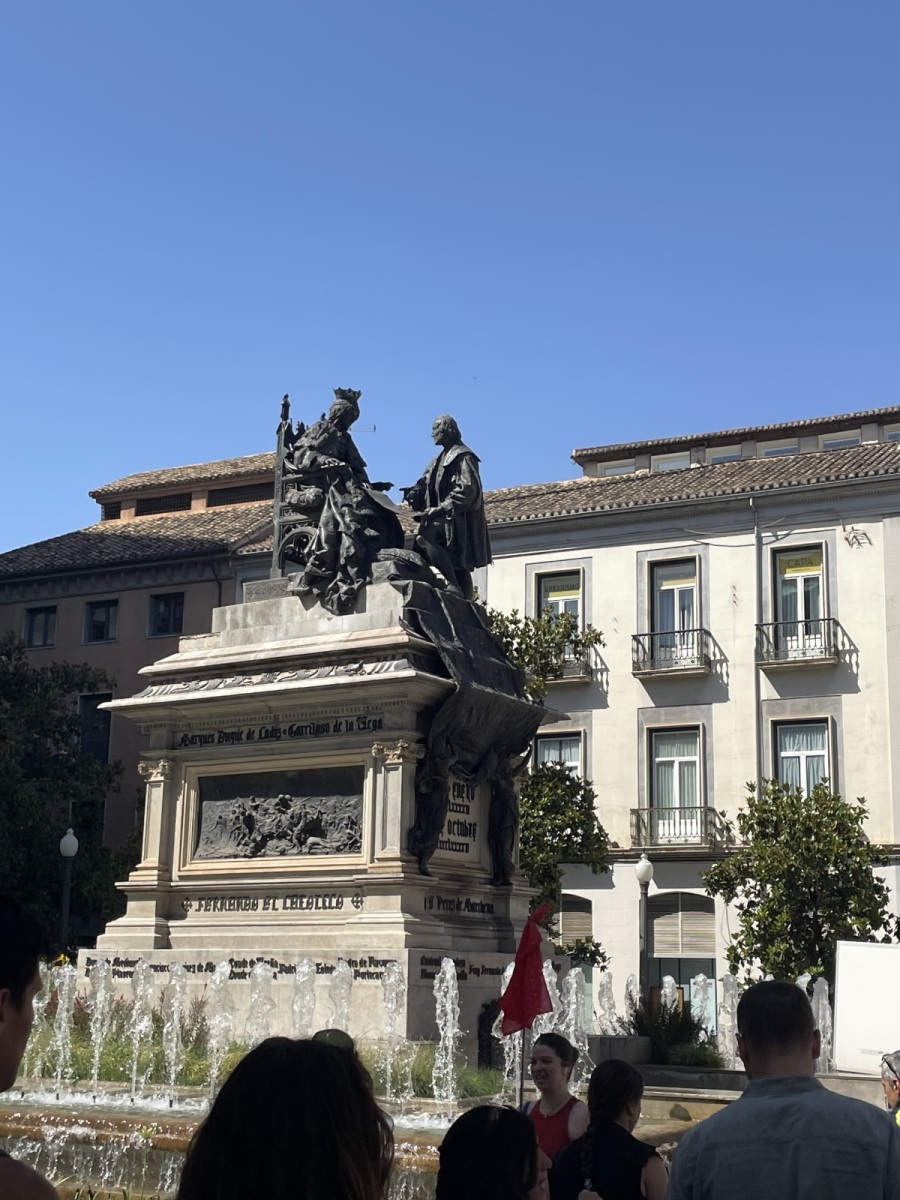 Across the city, Sophie and Gabby took a walking tour of Granada in the morning, learning about its rich history. Here are some notable places that they had the chance to visit. They visited the statue of Queen Isabella I of Castile, who alongside her husband, Ferdinand II of Aragon, fought to capture the city of Granada from the Nasrid Dynasty in 1492. Queen Isabella I passed away in 1504 and is buried at the Royal Chapel of Granada (whose construction was her final royal decree) which Sophie and Gabby also got to see!