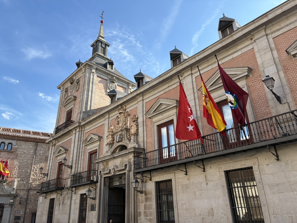 Next, we visited the Plaza dela Villa, the first main square of Madrid, with surrounding buildings constructed in the 15th century. The location of Madrid’s city hall from the 17th century until 2007, it was built during the reign of the Austrian royal family of Hapsburgs. This plaza and other contemporaneous structures characterize “Hapsburg Madrid” through their tall roofs and more modest architecture. This style is also reflected in the 17th-century square Plaza Mayor, which used to host public markets and even trials during the Spanish Inquisition, now a popular tourist destination.