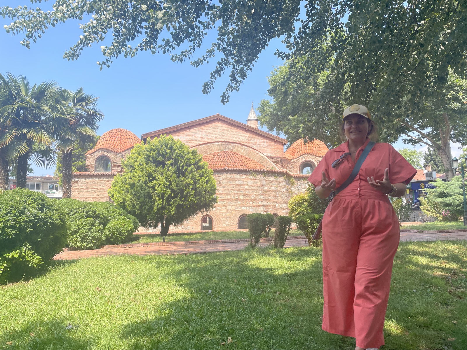 Afterwards, we walked through the sculpture garden and along the city wall towards the ruins of a kiln complex from the 15th century where iznik style tiles were produced. Imagining where the water to heat and cool the pottery ran was very interesting to me, and we had a lot of questions about how the complex worked. There were baths alongside kilns! We also stopped at an iznik tile market where we bought ceramic souvenirs and watched the tilemakers at work. Finally, it was time to return to the Ayasofya Camii to see the interior. We took a look at the colonades that were replaced with Ottoman arches, and how the brick shapes reflected that. Though the frescoes were very damaged, Dr Pitamber led us to one that depicted Philoxenia– the hospitality of strangers. It was mostly faded but since the professor had spent a lot of time deciphering what the frescos had been, she was able to point out and reconstruct remaining pieces like visible halos and a depiction of Jesus on a mountain. There was a lot to see in this tower-shaped room, and the professor explained all the visible parts and spoke on how important it is to study historical sites before they can be used for other purposes or destroyed. It was a very touching moment and I felt connected to the scholars who scrambled to document other sites after the destruction of the Koimesis church.