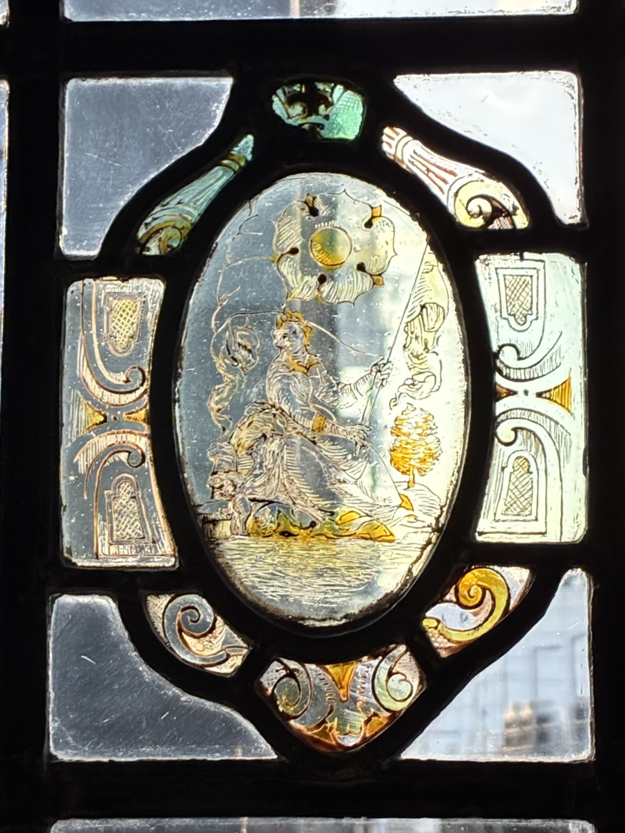 To celebrate its 150th anniversary, the top floor of the building hosted an exhibition of historic fabric prints and tiles. The tile exhibit was especially fascinating. Most featured were designed by William De Morgan, and feature Persian and Arabesque motifs. One large tile made for the cruiseliner SS Arabia features the cypress tree, a motif our class encountered in the context of Umayyad palace decoration, where the tree symbolized connection to the paradise of the afterlife (specifically in the context of garden decoration; the tree in other contexts could also symbolize hope, eternity, and immortality).