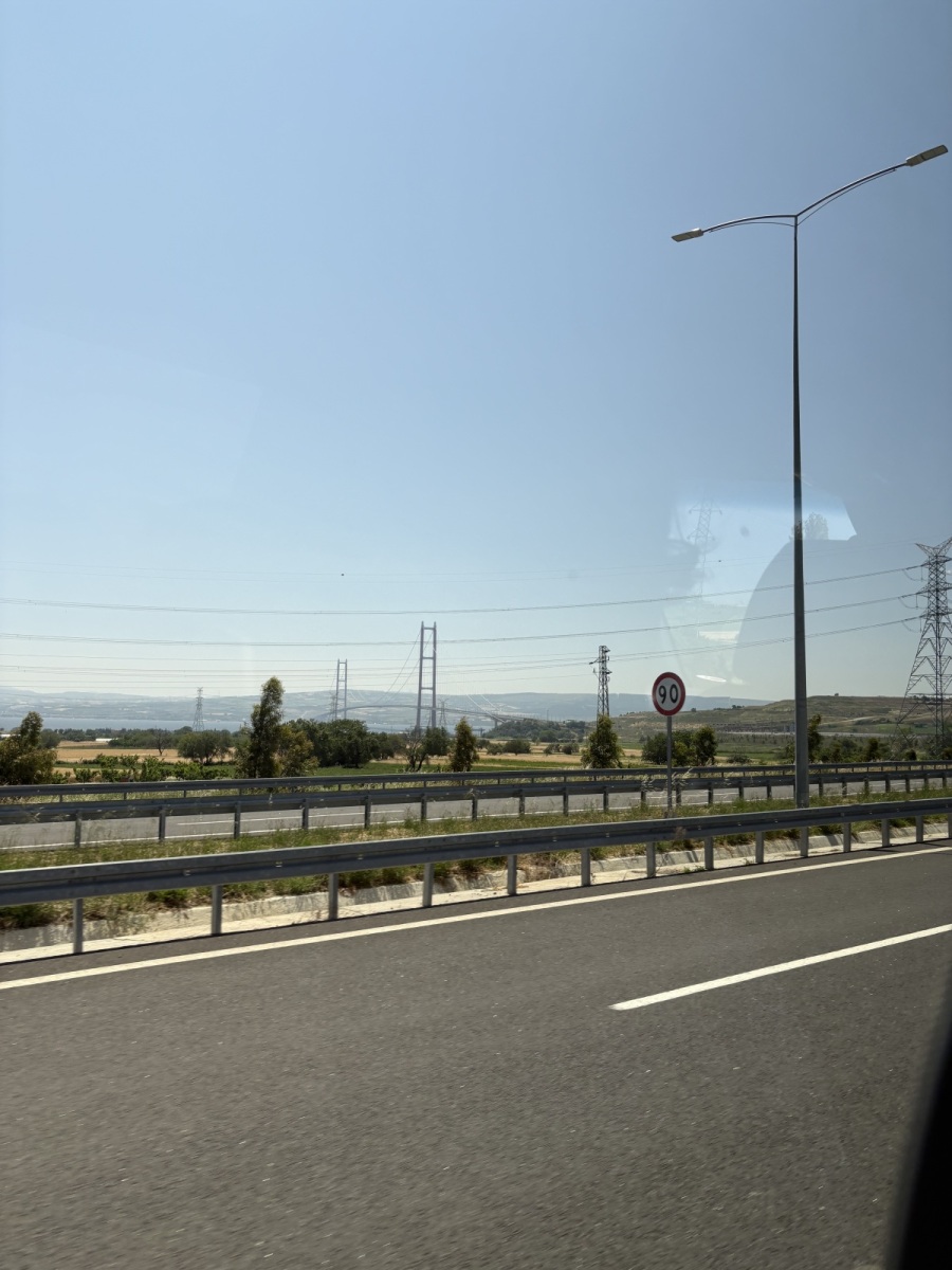 To pass the time, many of us watched an intro lecture video on Anthropology, Museums, and Ethics from Dr. Helen Human, Dr. Pitamber’s friend and colleague who will be joining us for the remainder of the trip. To get in the island spirit, I also made time to watch Mamma Mia. The highlight of the ride was crossing the Çanakkale Bridge over the Dardanelles, the waterway which would have once been bustling with trade ships. Spanning over 2,000 meters, it is the longest suspension bridge in the world and connects the European and Asian sides of Turkey.