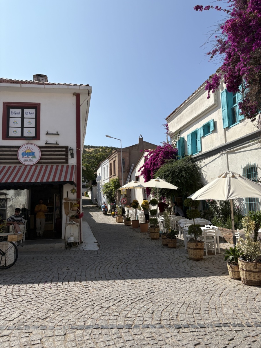 This morning was our last in Istanbul. After a full week in this bustling city, we packed our bags and began the journey to Bozcaada, a small island in the Aegean Sea. The first leg of travel consisted of a 4-hour shuttle bus ride out of the city. Unlike Spain, Turkey is not connected by a network of public trains to ease cross-country travel. Instead, buses like ours provide a more intimate view of the city and its surrounding area. As such, we were able to see even more segments of the land walls of Constantinople, pictured below, which were presented on by Kacie last week. These walls stretch from the Sea of Marmara to the Golden Horn, which is where the Sea meets the Bosphorus Strait, and were originally built in the 4th century CE. Once we were out of the city, we headed southeast towards Geyikli, the mainland town right next to Bozcaada.