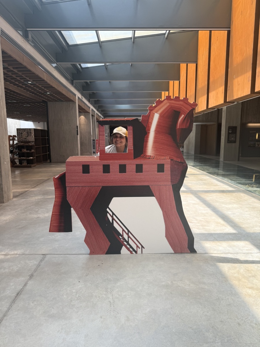 Before walking the ruins of ancient Troy, we stopped at the Troy Museum—an architectural marvel in its own right and a museum that, fittingly, feels like a journey through time. We were incredibly fortunate to be guided through the day by Dr. Human, a friend of Dr. Pitamber and a specialist in the archaeology of Troy. Not only has she worked extensively on the site itself, but she has also collaborated directly with the architects who designed the museum, having been part of the team that helped bring the vision to life.
