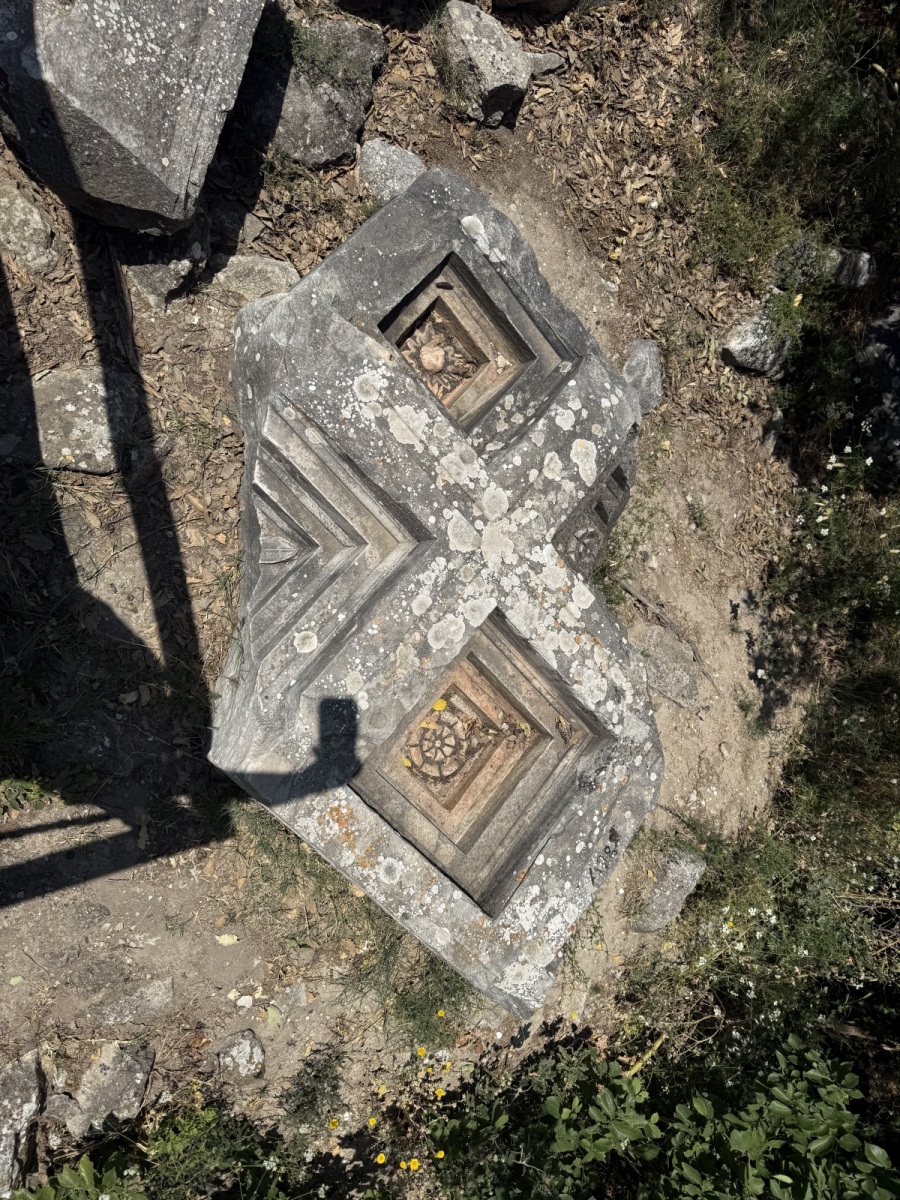 Our first stop was the Temple of Athena, once a grand sanctuary crowning the city during the Hellenistic and Roman phases of Troy, known in these eras as Ilion. Though only fragments of its coffered ceiling remain on site today, the temple would have stood as a visual anchor, signaling Troy’s renewed importance under Greek and Roman rule. This monument belonged to Troy VIII–IX, when Augustus and other Roman elites proudly claimed Trojan ancestry and invested in beautifying the site as a symbolic birthplace of the empire.