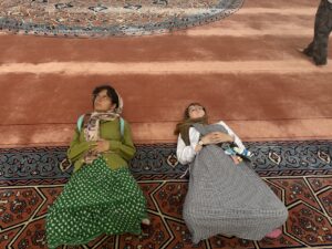 At the Suleymaniye Mosque, otherwise known as the Magnificent Mosque of the Sultan Suleymaniye, we listened to an in-depth presentation on the history of the Mosque, why it was built, its setup, including the three vertical towers that protrude from the complex, adding to its grandiose-ness and impressive scale. As Carson told us, the mosque is located on the third hill of Istanbul and was commissioned by Sultan Suleiman the Magnificent in the mid-16th century. For those of you interested in visiting mosques or learning more about Islam as a religion, here is a brief Mosque etiquette guide from what I have gotten to experienced: