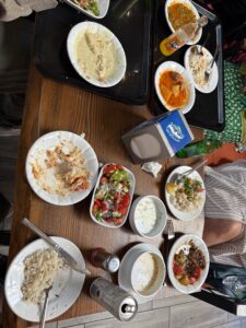 After satiating our archeological stomachs, we headed off to lunch to satiate our hunger for food! We stumbled upon a self-service style restaurant with the cutest bungalow-style seating room, which was accessorized with wall lighting, comfortable couch-like seating, and some of the most delicious food I have ever had the pleasure of eating! I ordered a cheese potato and chicken dish that I have been searching for the name of ever since… to no avail. However, I did have a bowl of rice pilaf and a Mediterranean salad as a side dish. It was sooooo delicious except for the jalapeno pepper I accidentally ate.