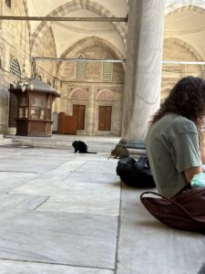 After seeing the Tomb of Suleiman and his wives, the next stop on our agenda was the Sehzade Mosque, or the Prince’s Mosque. This was our second 16th-century Ottoman imperial mosque of the day, and it was located in the Fatih district of Istanbul, similar to the Mosque of Suleymaniye. This mosque was also commissioned by Ottoman Sultan Suleiman the Magnificent, as a memorial to his son, Sehzade Mehmed, who died at twenty-two years old. At this mosque, I decided I would start to take pictures of and record my encounters with the cats of Istanbul.