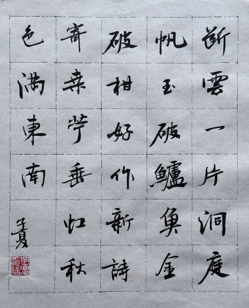 Chinese calligraphy is one of my hobbies. I have been modeling my practice on the exemplary works of many masters, including Wang Xizhi, Chu Suiliang, Su Shi, Mi Fu, and Shen Yinmo. Below is a selection of my own work, presented as a record of my progress.