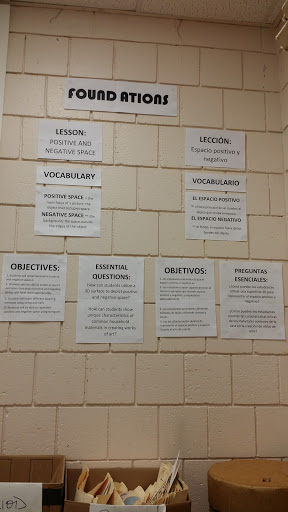 Another example of relevant unit information posted on the classroom wall from my Positive and Negative Space unit. All information was again translated in Spanish.
